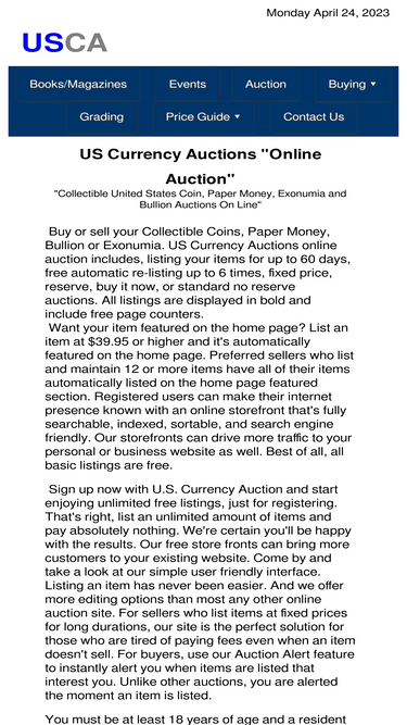 96%online auction, buy, sell, bid, list, collectible currency, paper money. free listings, price guide, usca