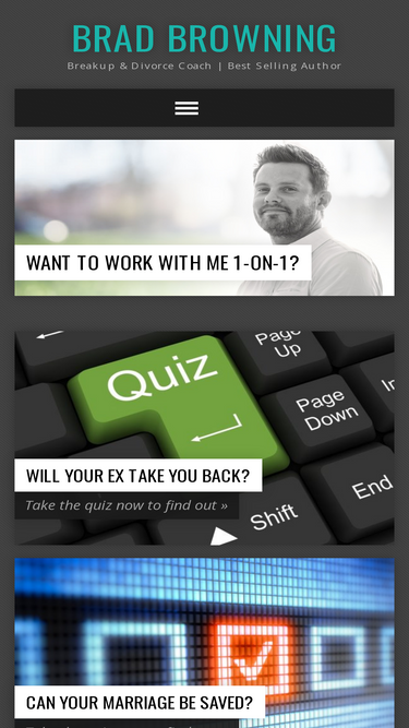 100%brad browning is a world-renowned breakup and divorce coach. he is the author of two best-selling programs, the ex factor guide and mend the marriage.