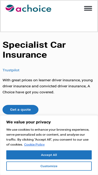 95%Looking for insurance for learner drivers, young drivers, and motorists with convictions? Click here to get a quote today from A Choice.