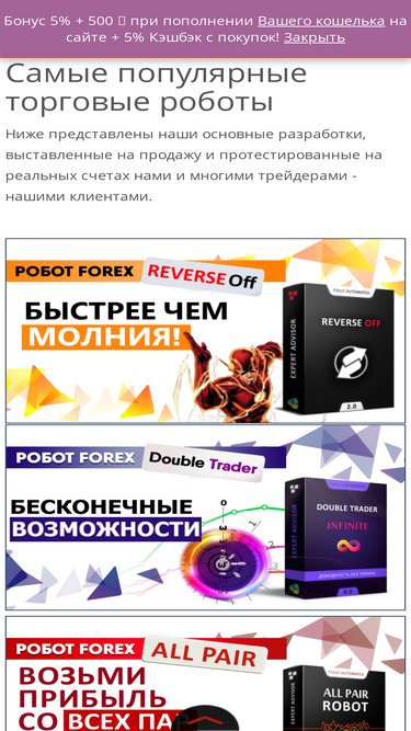 75%форекс советники. торговые роботы от профессиональных трейдеров. самая прибыльная автоматическая торговая система на рынке. 100% автономна.
