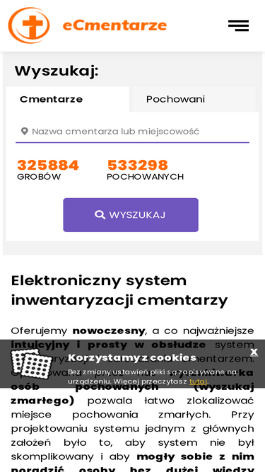 80%Inwentaryzacja cmentarzy z możliwością przeszukiwania grobów. Cmentarze internetowe z mapą cmentarza. Ewidencja grobów z lokalizacją grobu na mapie.