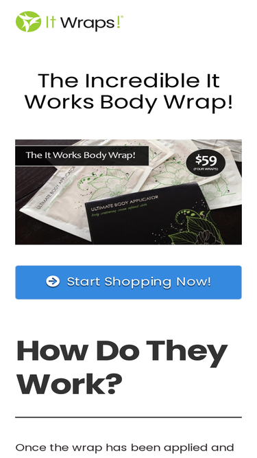 99%With over 1 Million Wraps sold, the It Works Wrap™ is quickly becoming a household name. Have you tried one? If not, head over to ItWraps.com to find out how you can save over 40% on your first wrap!