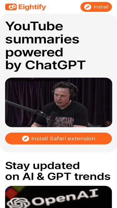 87%Eightify is the top AI-powered video summarizer for YouTube. Our advanced AI generates concise video summaries, extracting key ideas instantly and saving time.