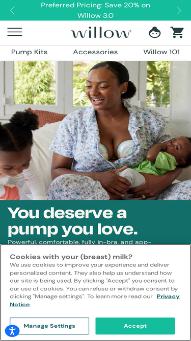 89%Affirm Landing | Willow | Hands-Free, App-Compatible & Wearable Breast Pumps Save 20% on pumps Up to 40% off Clearance Save up to 40% with insurance Breast Pumps Willow 360 Pump 100% leak-proof with personalized suction Shop now > Willow Go Pump High capacity with a 100% comfort rating Shop now > Bundle &