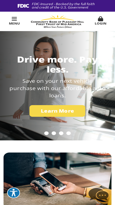 74%community bank of pleasant hill is a local financial institution committed to providing sound banking solutions for the people and businesses of pleasant hill and surrounding missouri areas.