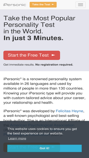 75%Free personality test by iPersonic. Determine your personality type in just 3 minutes. The personality test delivers immediate, accurate results.