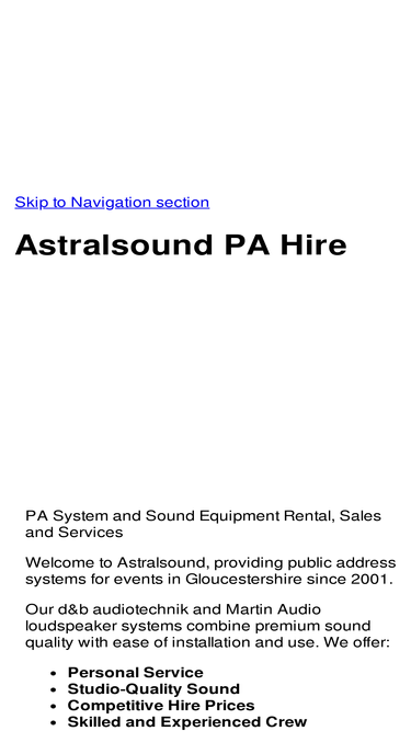 79%pa hire, sound equipment sales and services, gloucestershire. d&b audiotechnik and martin audio pa systems, 600w to 4kw.