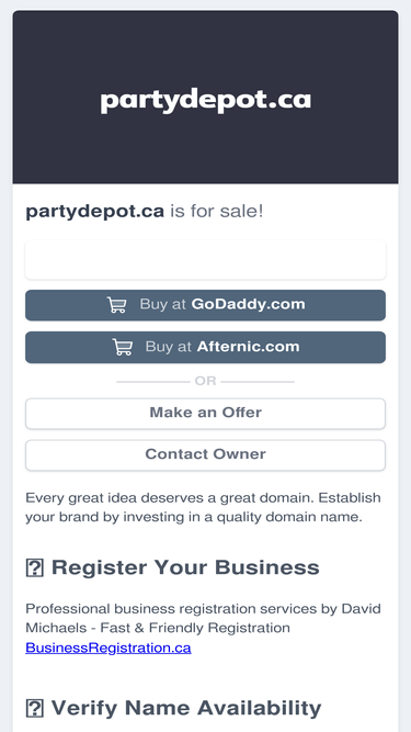 100%partydepot.ca is available for purchase. get in touch to discuss the possibilities!