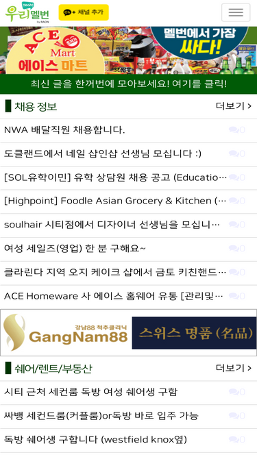 87%한인 업소록 - 호주 멜번 무료 구인/구직, 쉐어/렌트, 사고/팔기, 농장/여행, 멜번 지역 정보 커뮤니티