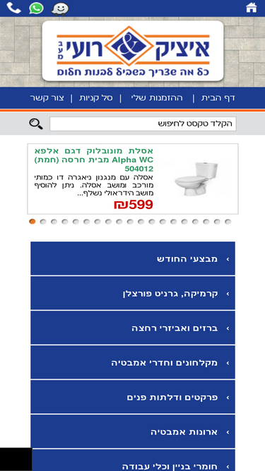 42%אתר האינטרנט המוביל לבונה ולמשפץ , האתר מציע מגוון עצום של מוצרי קרמיקה, אריחים, כלים סניטרים ואבזור מתקדם במחירים הטובים ביותר בישראל !!!