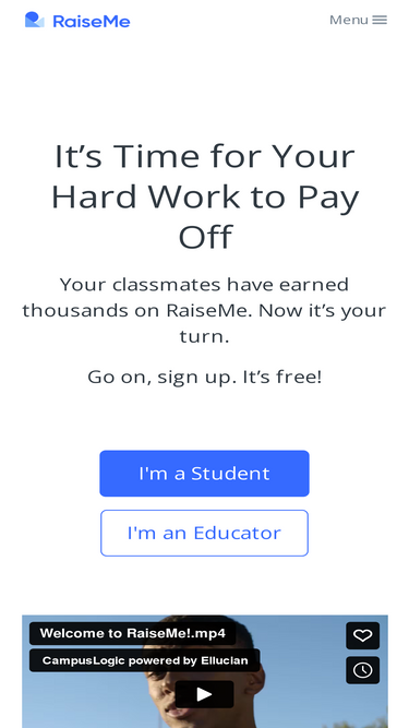 A new way to earn money for college. With Raise Me, anyone can earn money for college starting in 9th grade based on their achievements in school and life.