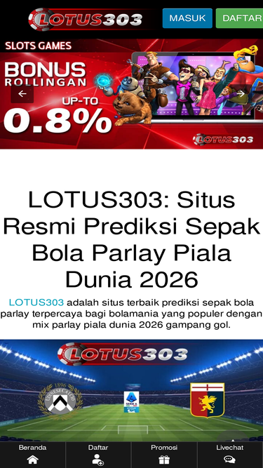 86%LOTUS303 kini menghadirkan situs prediksi sepak bola parlay berbasis data hari ini yang dirangkum secara jitu dan akurat dengan informasi kondisi pemain dan tim yang akan bertanding.