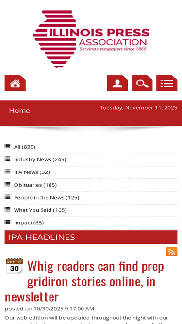 86%the ipa was founded in 1865 as an organization for illinois publishers. it has evolved into the largest state newspaper association in the country representing more than 400 daily and weekly newspapers. the association spent much of its early history housed in gregory hall on the campus of the university of illinois. in 1975, it relocated to springfield and settled into its permanent headquarters in april of 2000. the ipa has evolved from a fraternal organization to one whose agenda now focuse