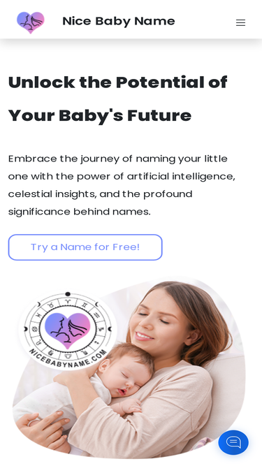89%Find the perfect baby name with NiceBabyName's Nameology Science. Discover names with positive meanings, cultural significance, and astrological compatibility for your newborn.