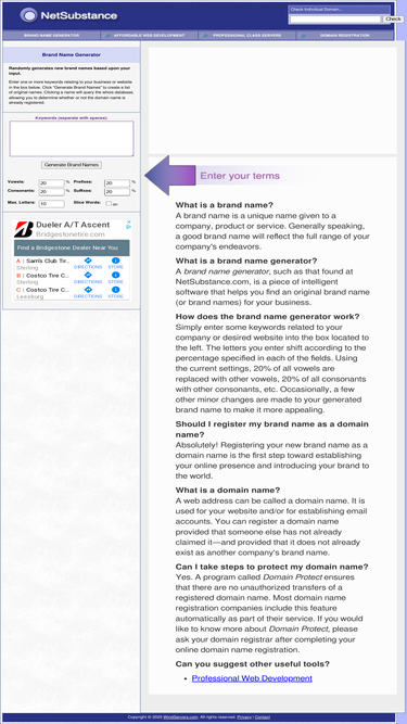 97%domain name registration tool. use the brand name generator to create original domain names for your website or business. it's free!