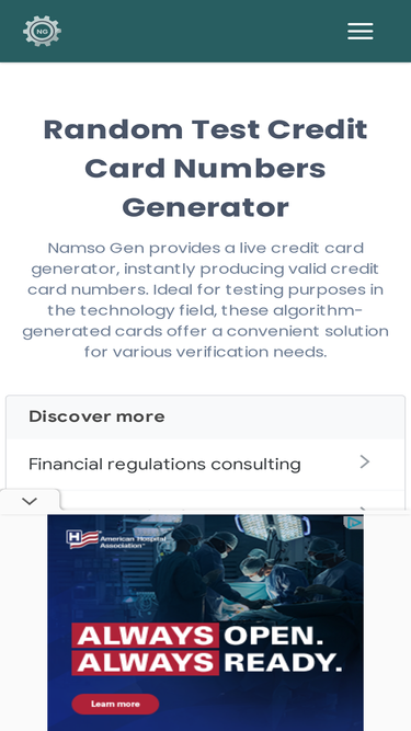 100%namso gen offers a live credit card generator providing instant access to valid credit card numbers. generate valid credit card for testing with namsogen.
