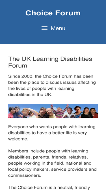 66%The Choice Forum started in the year 2000 in response to research which showed that many people working with people with learning disabilities were isolated and would appreciate receiving more support in their quest to support people with learning disabilities to have more choice in their lives. The online PMLD Network, which is now incorporated ... Read more