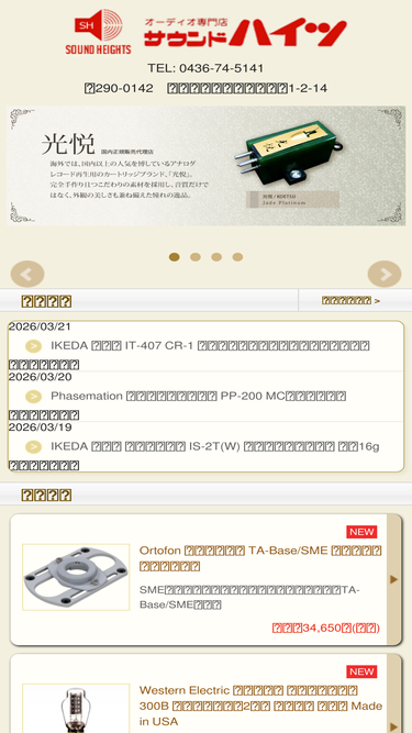 88%千葉県市原市のアナログ関連商品・オーディオ専門店「サウンドハイツ」です。老舗フォノカートリッジ・ブランド「光悦・koetsu」の国内正規販売代理店「今だからわかるアナログの良さ」をテーマに迅速・誠実な応対でお客様のアナログライフを応援いたします。オルトフォン、シュアー、sme、ガラード、トーレンスなどのメジャーブランドからマイナーブランドまで厳選したアナログ関連商品を豊富に取り揃えております。