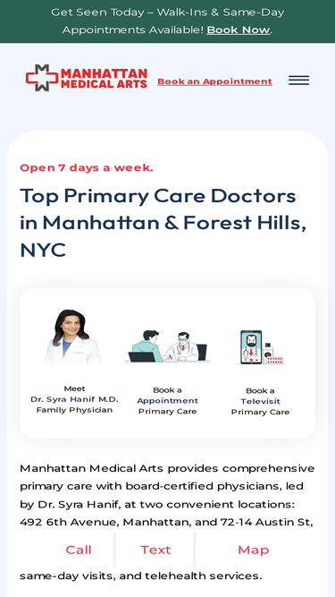 91%Primary Care Physician NY - Family and Internal medicine. Our medical practice is located in the heart of New York City and is accepting new patients. Book your appointment now.