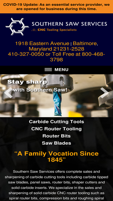 Southern Saw offers sales and sharpening of carbide cutting tools, carbide CNC router bits, saw blades, custom router bits, routing tools. Serving Baltimore MD, PA and VA.