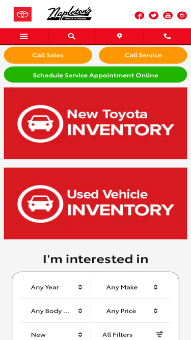 93%visit us and test drive a new or used toyota in champaign & urbana at napleton's toyota of urbana. our toyota dealership always has a wide selection and low prices. we've served hundreds of customers from champaign, danville, rantoul and mahomet.