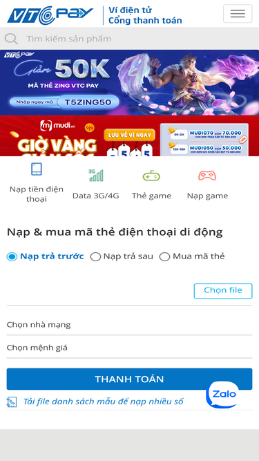 80%Top up for all VNGGames. Quickly, safely and exciting promotions waiting ahead.