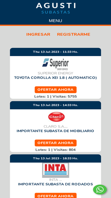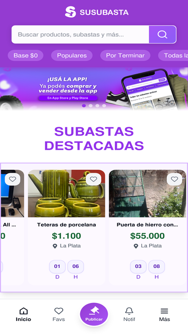 85%El único marketplace de subastas del país, participá en subastas, registrate, pujá y ganá