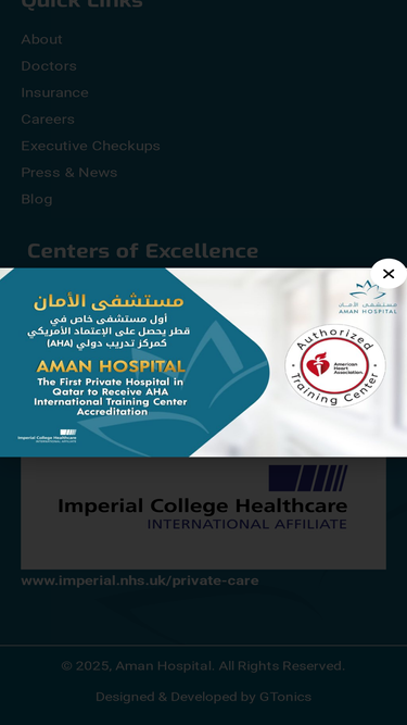 90%Answers from Aman Hospital in Doha, Qatar to frequently asked questions about Hospital Policies, admissions & appointments.