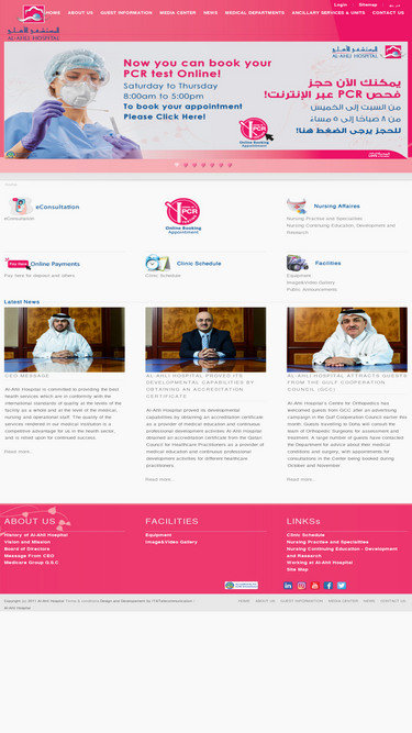 85%المستشفى الأهلي هو أفضل مقدم رعاية صحية خاصة في قطر، يقدم رعاية طبية فاخرة بمستوى خمس نجوم، مع أكثر من 1750 طبيبًا خبيرًا في أكثر من 30 تخصصًا، في بيئة مستشفى فاخرة. احجز موعدك اليوم.