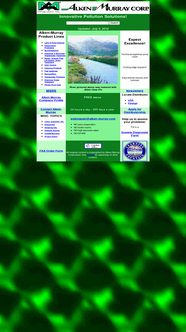 100%integrated creative solutions to a wide range of pollution problems, using bioremediation, demulsifiers, fuel additives, polymers and miscellaneous chemicals. from probiotics to keep fish, shrimp and prawns healthy with clean water to aquatic restoration, biodredging of lakes, rivers and ponds. odor control solutions, especially hydrogen sulfide and ammonia, from landfills to lakes, ponds and pet accidents. food fats and grease treatments, petroleum remediation. lots of educational articles linked to by universities and schools.