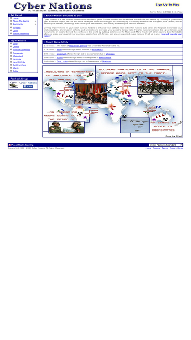 100%Cyber Nation is a free online nation simulation game. Interact with other players while you build and defend your empire.