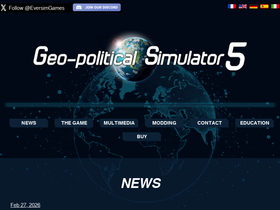 78%geo-political simulator 5, is a geopolitical simulation game of our current world. players can play as heads of state (president, king, prime minister, etc.) or opposition leaders of a country , or ceos of big mutinational corportations