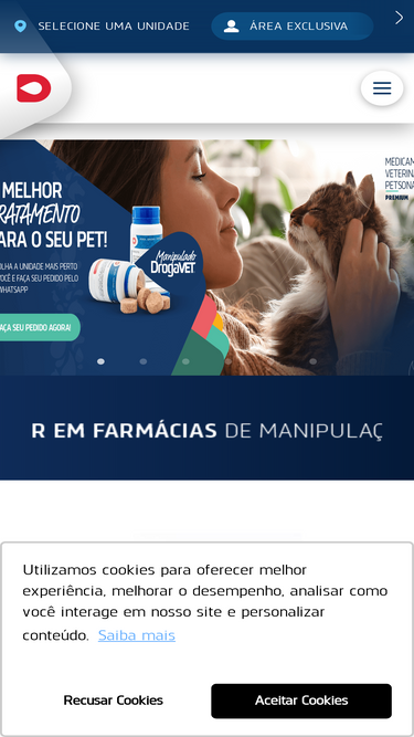 76%Facilidade e economia no tratamento do seu animal. Medicamentos veterinários manipulados na forma e sabor preferidos de cada pet. Conheça a farmácia de manipulação veterinária líder de mercado DrogaVET