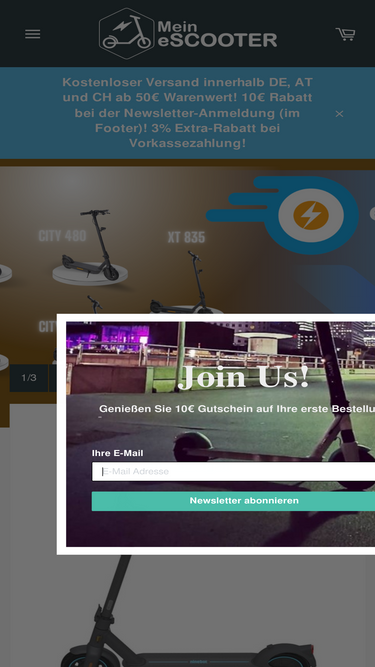 85%Willkommen in unserem Shop für Elektro-Scooter! Riesige Auswahl an E-Scootern, Zubehör und Versicherungen. Bestpreisgarantie! Kostenloser Versand in DE, AT und CH! Optimiere dein Fahrerlebnis mit unseren hochwertigen Produkten. Kaufe jetzt deinen E-Scooter und erlebe die Freiheit der Elektromobilität!