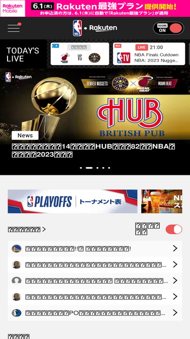 NBAを観るなら【NBA Rakuten】!NBAの試合をLIVEや見逃し動画配信!最新ニュース・無料動画・選手やチーム情報も!アプリで動画ダウンロード可・らくらく視聴!ライブチャットやコミュニティ機能付き!