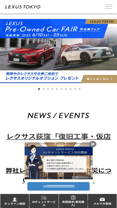 87%LEXUS TOKYOオンラインサービスページ。オンラインならではのキャンペーン、オファー、イベント、セミナー情報をはじめ、試乗・来店予約などのリクエストをオンラインにて受付いたします。