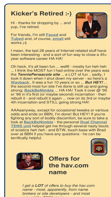 80%just a splash page to let folks know that i've retired and that hav.software is, effectively, closed for business - however, past clients and customers are welcome to contact me. if you're interested in buying either the hav.com or pgp.org domain names, please submit an offer in writing.