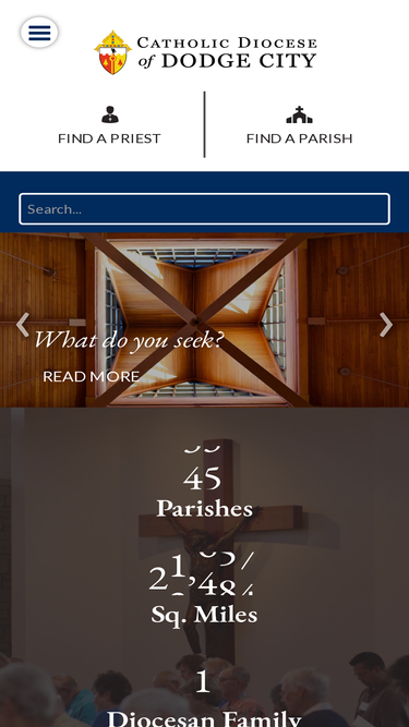100%Welcome to the official website of the Catholic Diocese of Dodge City. It features a calendar, diocesan directory, files, pictures, maps, online giving and much more!