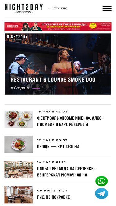 76%портал, освещающий ресторанную, светскую и клубную жизнь россии, а также стран восточной и западной европы. новости, интервью, анонсы событий, каталог заведений. обзоры, фото и видеорепортажи.