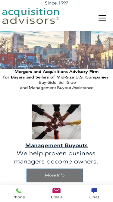 Acquisition Advisors. Helps Buyers sell quietly for maximum, Bus. managers become owners. Pre Sale valuation