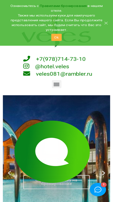 100%    +7(978)714-73-10     @hotel.veles     veles081@rambler.ru Добро пожаловать в отель "Велес"Оставить заявку на бронирование Приглашаем на отдых в одном из лучших курортных отелей КрымаК вашим услугам печаный пляж в 100 метрах от отеля, бассейн, охраняемая парковкаОставить заявку на бронированиеПодарите себе и близким незабываемый отдыхПо вопросам бронирования обращайтесь на телефонную линию в разделе […]