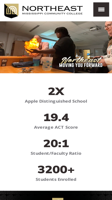 79%Northeast Mississippi Community College's main campus is located in Booneville, Mississippi at the intersection of MS-145 and Cunningham Boulevard.
