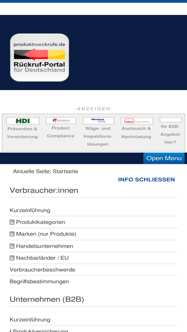 100%fundstellenverzeichnis für verbraucher:innen und unternehmen zu rückrufaktionen, produktwarnungen, sicherheitshinweisen & mehr