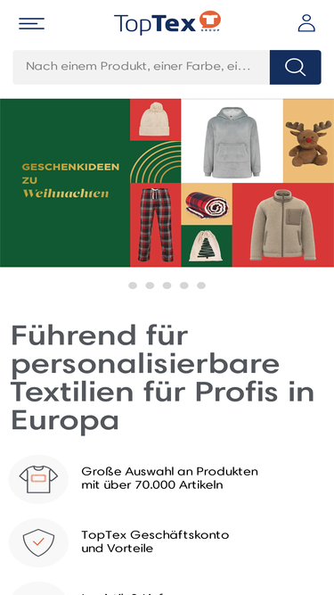 94%TopTex – Personalisierbare Textilien, Gepäckartikel, Accessoires für Firmenkunden in Deutschland. Über 60.000 Produkte, europäischer Vertriebshändler für Textilien, schnelle Lieferung, reaktiver Kundendienst