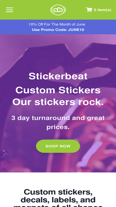 87%Custom Stickers, Decals, Labels and Magnets That Rock! Stickerbeat is the place to shop for high quality custom stickers with your own artwork or design!