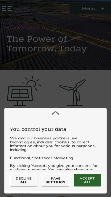 94%European Energy develops, constructs and operates renewable energy solutions. We are committed to an energy independent future for Europe and the world.