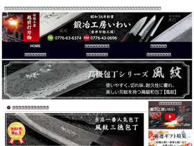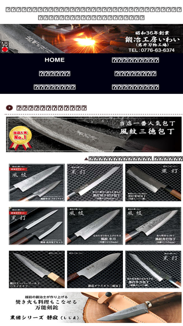 87%越前打刃物の「鍛冶工房いわい」では、使い手のことを想像しながら現役の伝統工芸士が一本一本手間暇かけて包丁を製造しています。 いわいが作り上げる包丁は昔ながらの工法と新しさを融合させ、使いやすく、丈夫で切れ味、耐久性等に優れた本格手打ちの和包丁です。砥ぎ直しや柄の交換等の補修もお引き受けします。