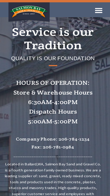 FAQs We hope the following pages will answer a variety of commonly asked questions. If you don't find what you are looking for, give us a call or shoot us an email. A Salmon Bay Sales Executive would be happy to talk to you about your next project. 206 784 1234 Concrete FAQs Get the