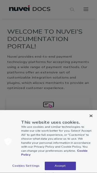 87%welcome to nuvei's documentation portal! nuvei provides end-to-end payment technology platforms for accepting payments using a wide range of payment methods. our platforms offer an extensive set of...
