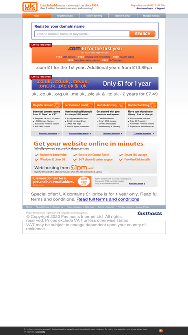 99%Pick up your.co.uk or .uk domain name for a penny — just £0.01 for the first year! The perfect start for any UK business.| 123 Reg